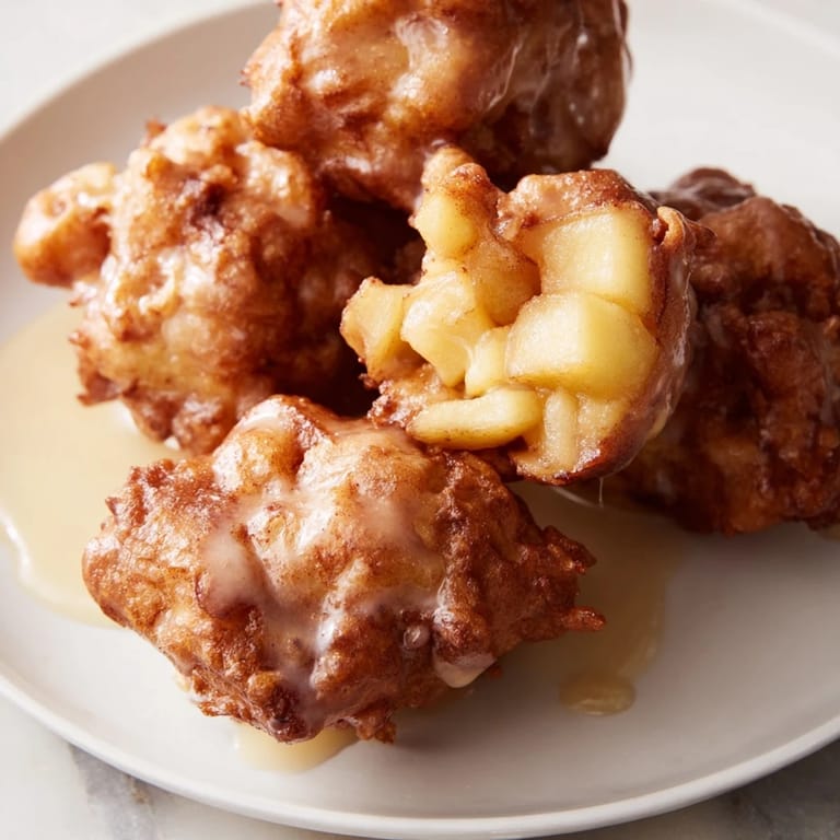 Save to Pinterest My neighbor showed up at my door one October morning with a paper bag still warm from her kitchen, and inside were these golden apple fritters that tasted like autumn itself. She'd made them dozens of times, she said, ever since her grandmother taught her the trick of not overmixing the batter. I took one bite and understood why she'd walked three blocks to share them—they were impossibly tender inside, crispy outside, with this glaze that caught the light like it had been glazed with honey. That was the day I decided I had to learn to make them myself, and honestly, I've never looked back.