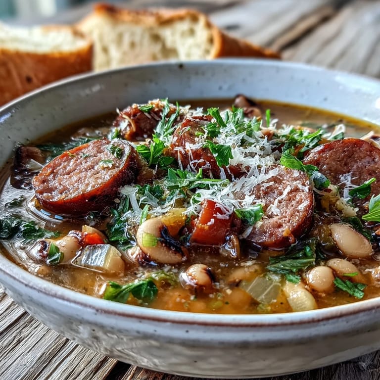 Save to Pinterest Experience the ultimate comfort food with this warming, rustic soup. By combining the hearty, earthy flavors of black-eyed peas with savory Italian sausage and a vibrant medley of vegetables, this dish creates a satisfying meal that is perfect for any day of the week. The savory broth tied together with aromatic herbs makes every spoonful a delight.