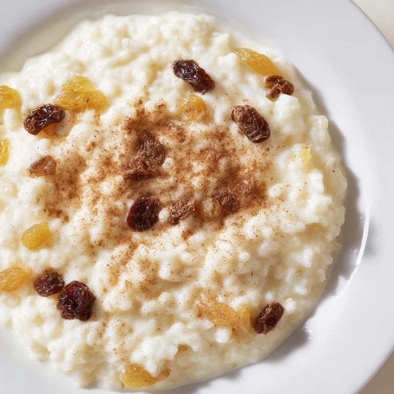 Save to Pinterest There's something about the smell of rice pudding baking that stops time. My grandmother used to make this on Sunday afternoons, and the whole kitchen would fill with that warm cinnamon-vanilla haze that made everything feel possible. I didn't appreciate it then—too impatient, too eager to move on to something else. But years later, I found myself craving that exact combination of creamy, tender rice and soft raisins, and I realized I was actually craving the slowness of it, the way the oven did most of the work while you just waited.