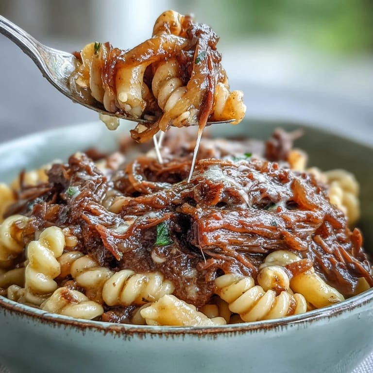 Save to Pinterest There's something about the smell of onions slowly caramelizing in a hot skillet that makes you pause mid-afternoon and wonder why you don't cook like this more often. I discovered this dish on a grey Sunday when I was trying to stretch one beef chuck roast into something that felt special, something that would fill the house with warmth before winter truly set in. The crockpot was my secret weapon, but it was those onions—golden, sweet, almost jam-like—that turned a simple braise into something closer to French onion soup meets pot roast. Ladling it over buttery noodles felt like a small act of kindness toward myself and whoever I was about to feed.