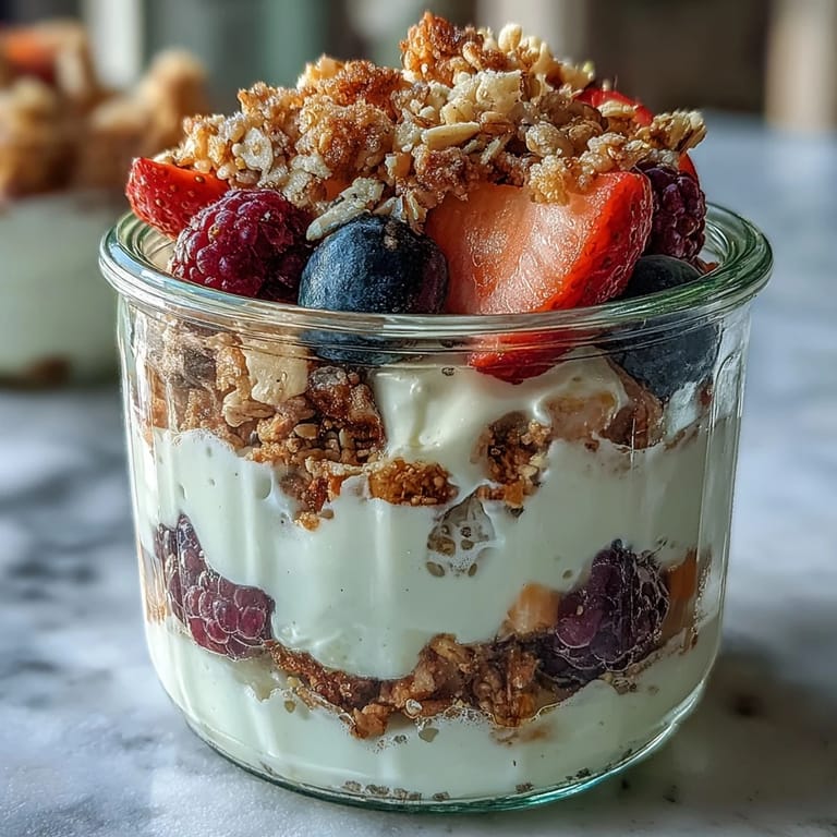 The magic of a parfait lives in that contrast between creamy, fruity, and crunchy happening all at once. I learned this the hard way by making an overly careful version where I didn't use enough granola, and it was just sad yogurt with berries—fine, but forgettable. Now I'm generous with the crumble because that snap between your teeth is what makes your brain register this as a real breakfast, not just a snack pretending to be healthy.