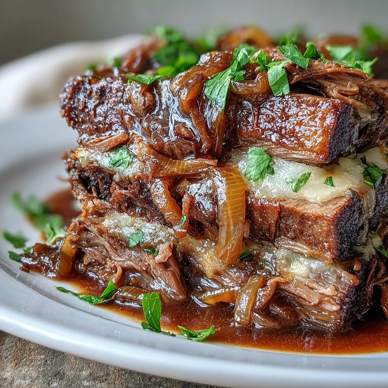 I made this for a dinner party once and forgot to warn anyone about the melted cheese step. When I lifted the lid and those Gruyere slices started bubbling into the beef, everyone in the room went silent. We stood around the crock pot like it was a campfire, waiting for those first slices. One friend said it tasted like French onion soup and a pot roast had a baby, and honestly, I cant think of a better description.