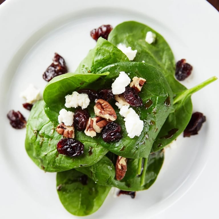 I often prep the vinaigrette in the morning and store it in a jar, giving it a vigorous shake before using. The nuts, cheese, and cranberries can sit in small bowls on the counter, covered loosely, so when dinnertime hits, assembly takes less than two minutes. Keeping the spinach bone-dry in the fridge, wrapped in a clean towel, ensures it stays crisp and ready to shine.