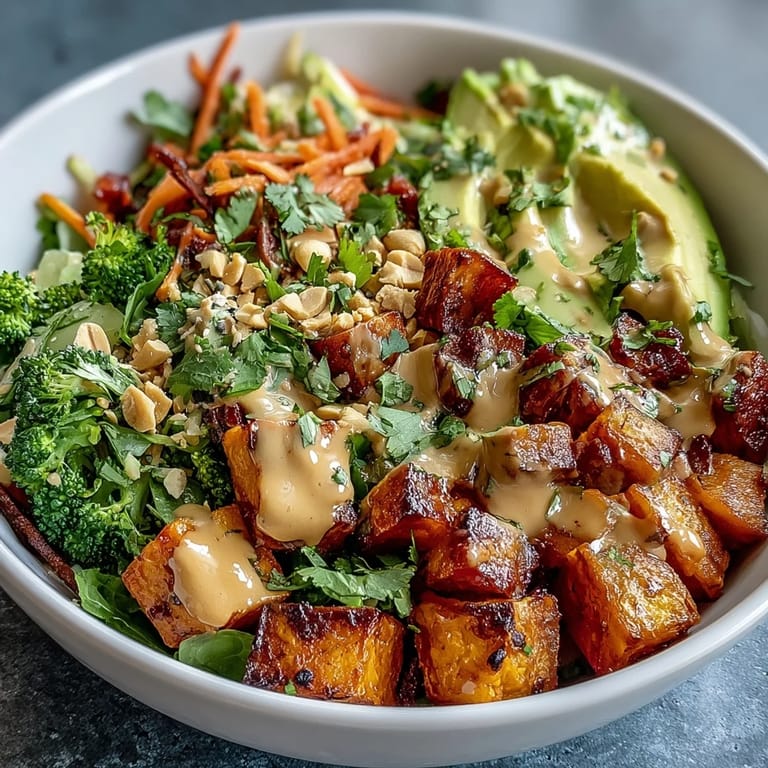 Save to Pinterest My coworker Sarah came back from a trip to Bangkok absolutely glowing, talking nonstop about the food markets and street vendors. When she mentioned a particular sauce—this creamy, tangy, slightly spicy peanut situation—I could practically taste it through her description. I spent a weekend experimenting in my kitchen, and this Thai peanut sweet potato bowl was born from that craving, a dish that somehow tastes like both comfort and adventure in one beautiful, colorful bowl.