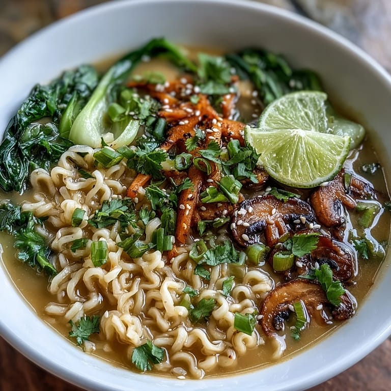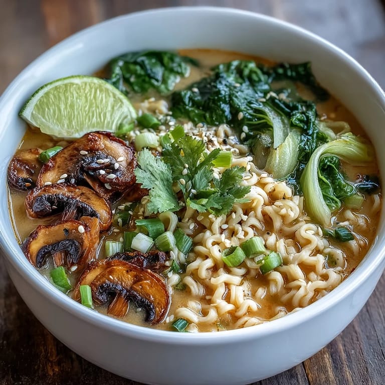 Save to Pinterest On a drizzly Tuesday night, my friend texted asking if I could whip up something warm and vegan for her surprise dinner party. I rummaged through my pantry and realized I had everything for this coconut curry ramen, and honestly, it felt like the universe was helping. That bowl changed everything about how I cook for others now, because watching someone's face light up when they taste that first spoonful of creamy, spiced broth is something I chase in the kitchen constantly. The way the coconut milk swirls into those curry spices still makes me smile.